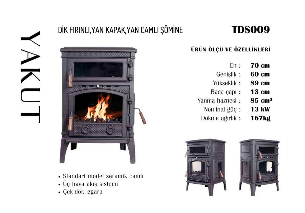 TDS009 Yakut Dik Fırınlı, Yan Kapak, Yan Camlı Şömine
